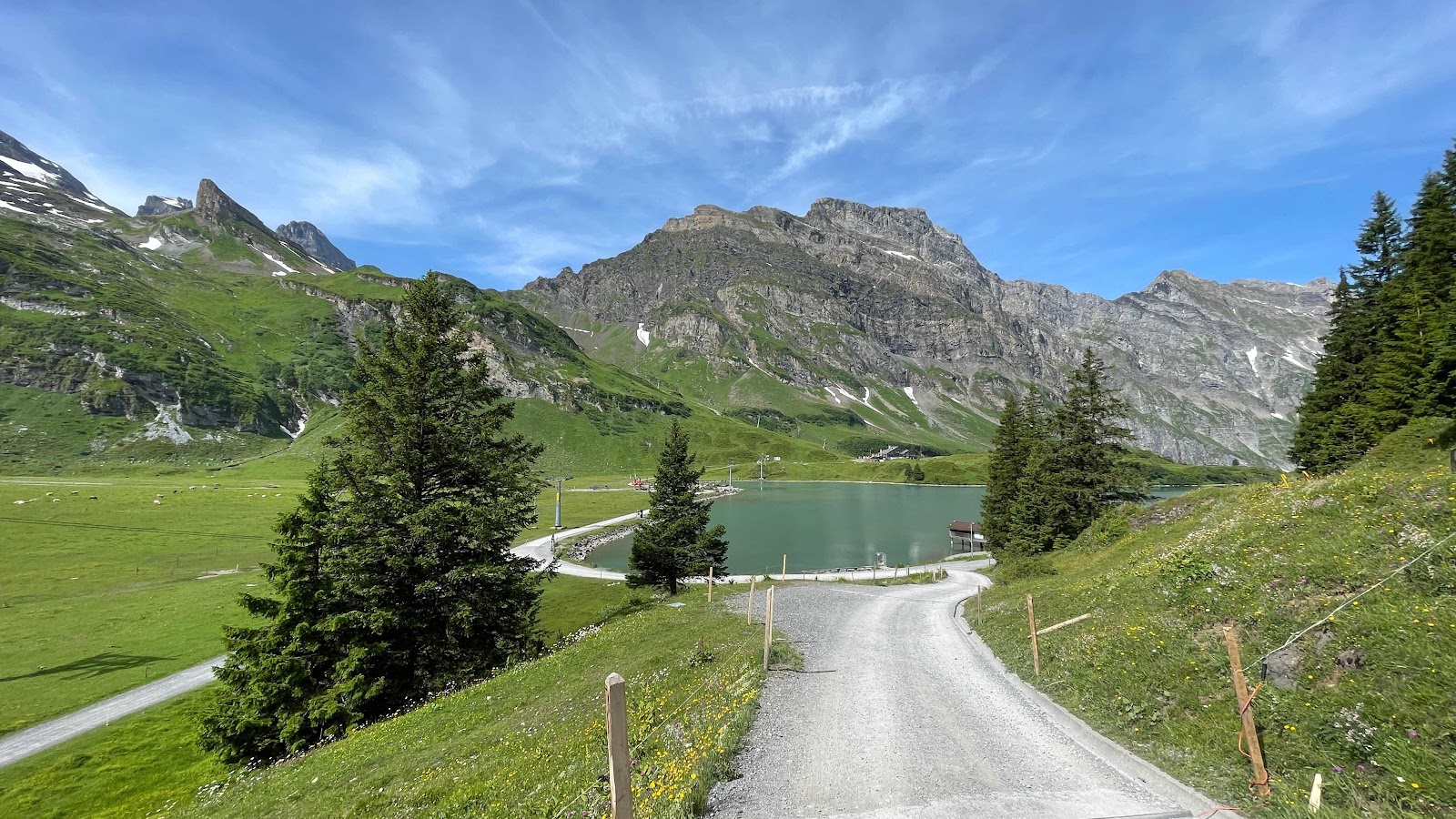 Une fois au lac Trubsee, le télésiège pour remonter est à l’arrêt. Je décide de faire le tour du lac. Ça monte, ça descend. Il fait toujours aussi chaud, alors je bois. Ce matin, j’ai rempli de 3 litres d’eau mon Camelbak.
