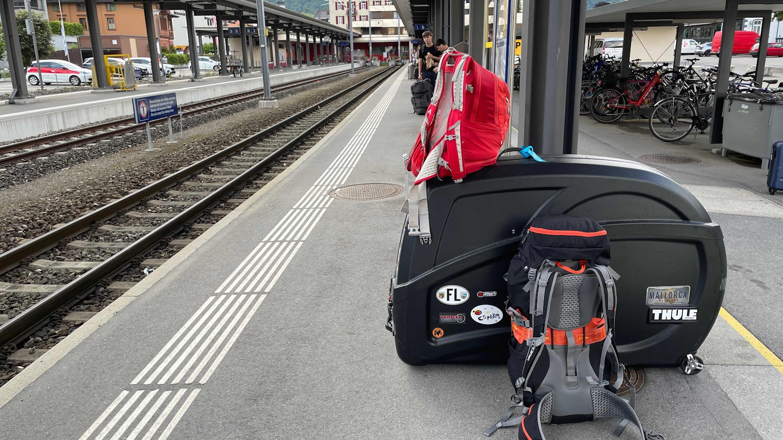 Arrivé avec 3min de retard (les cheminots s’organisent toujours pour rattraper au mieux l’horaire), je n’ai que 2min pour courir avec ma boîte de 85lbs (je pensais qu’en y mettant quelques trucs, ça serait plus facile sur roulettes que dans le dos, erreur). Le train était complet et j’ai fait le voyage entre Luzern et Interlaken pendant 1h40 dans le wagon du fret avec mon vélo. Zéro confort, et il faisait chaud. En consultant l’App une fois en route, j’ai vu que le train suivant était 10min après, avoir su.