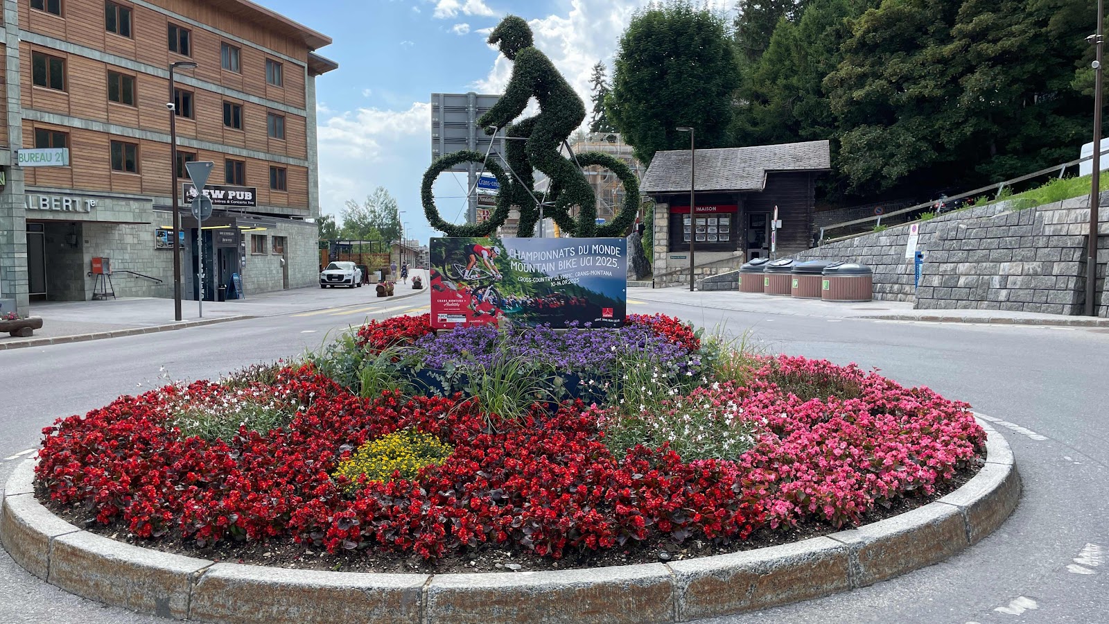 Les 10 au 14 septembre 2025 se tiendra ici le Championnats du monde du mountain bike UCI 2025. En février 2027 aura également lieu le FIS Alpine World Ski Championships. Pour le moment, pas question d’aller essayer les trails, il faut encore payer pour les télécabines et monter encore plus haut à 2275m. Pour le moment je fais vite le tour, je me rends à l’étant Grenon pour la photo avec le Crans Montana.