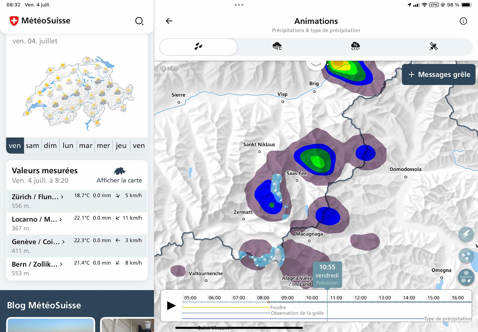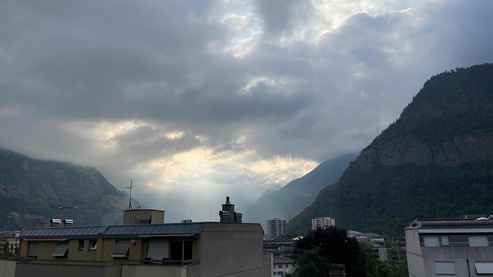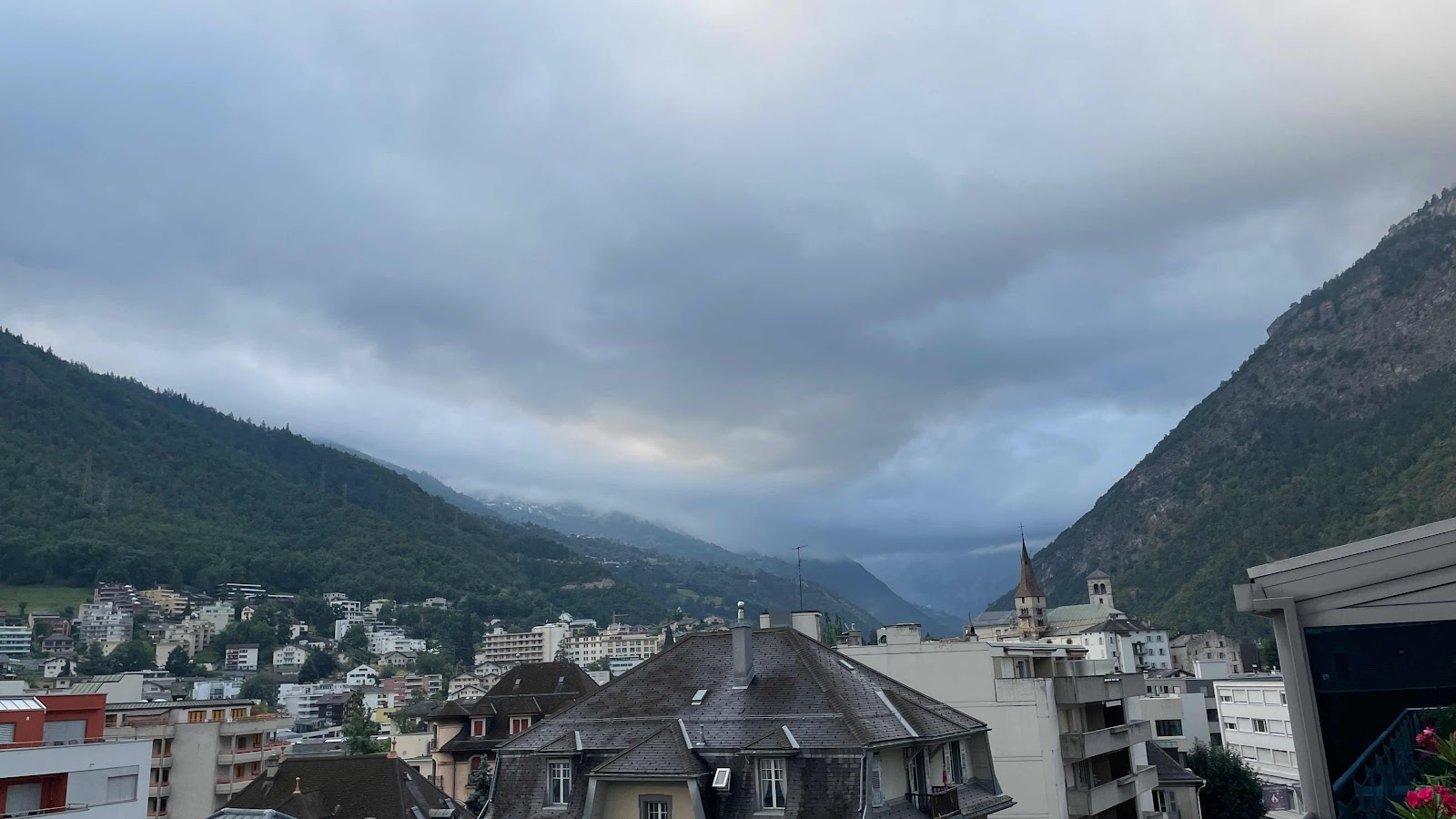 Contrairement à ce qui était annoncé hier soir, il pleut ce matin sur le Valais. Le ciel devrait se dégager vers 10h. Pour le moment, j’étudie mes options. La pluie bouge d’ouest en est et au sud comme au nord, il pleut présentement. Sur Saas-Fee où je voudrais aller, il ne fait que 12C sous la pluie. Il neigera aussi dans les hauteurs de Saas-Fee. Je vais attendre que le temps se dégage.